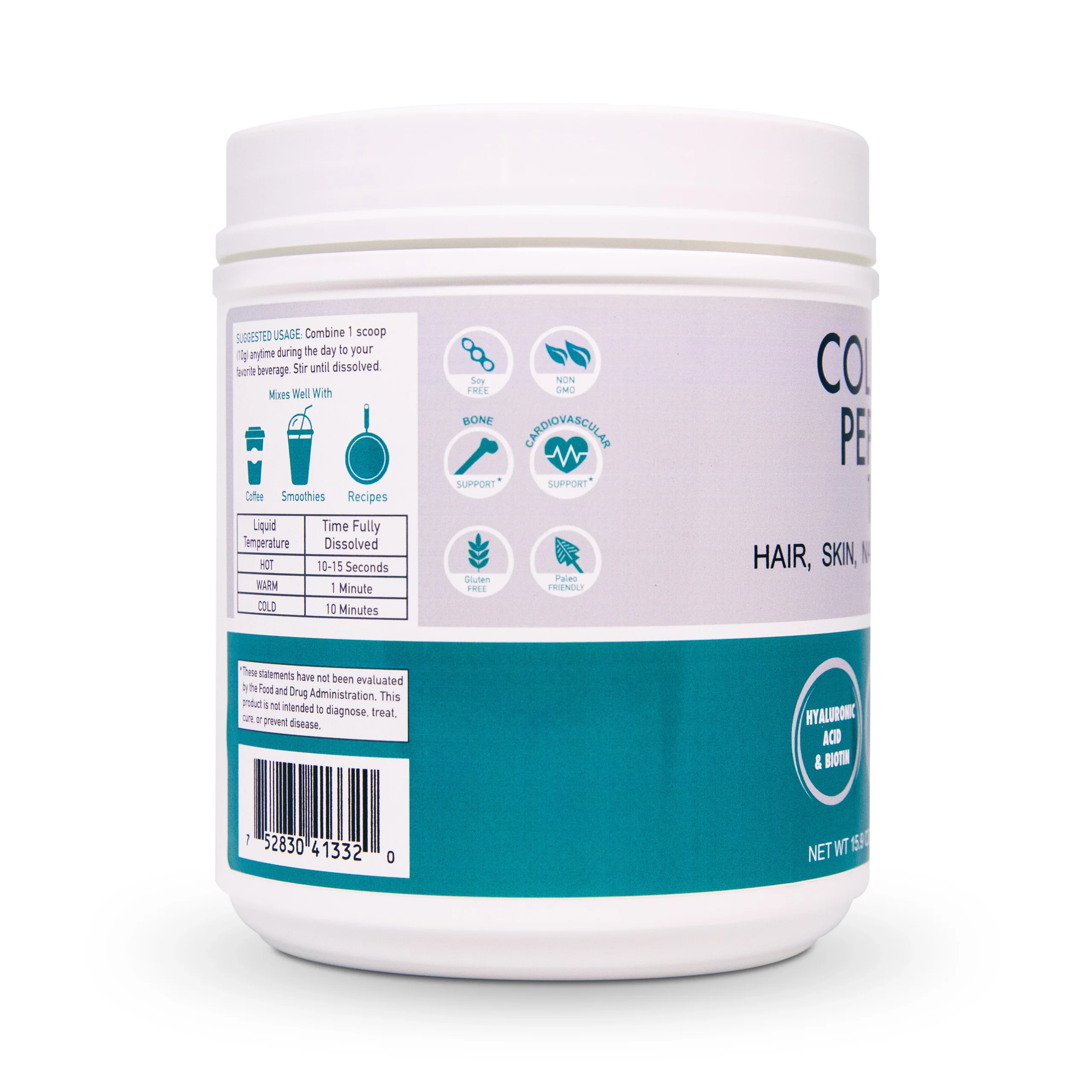 10g of Grass-Fed collagen Type I, II, III for skin, hair, bone & joint health.