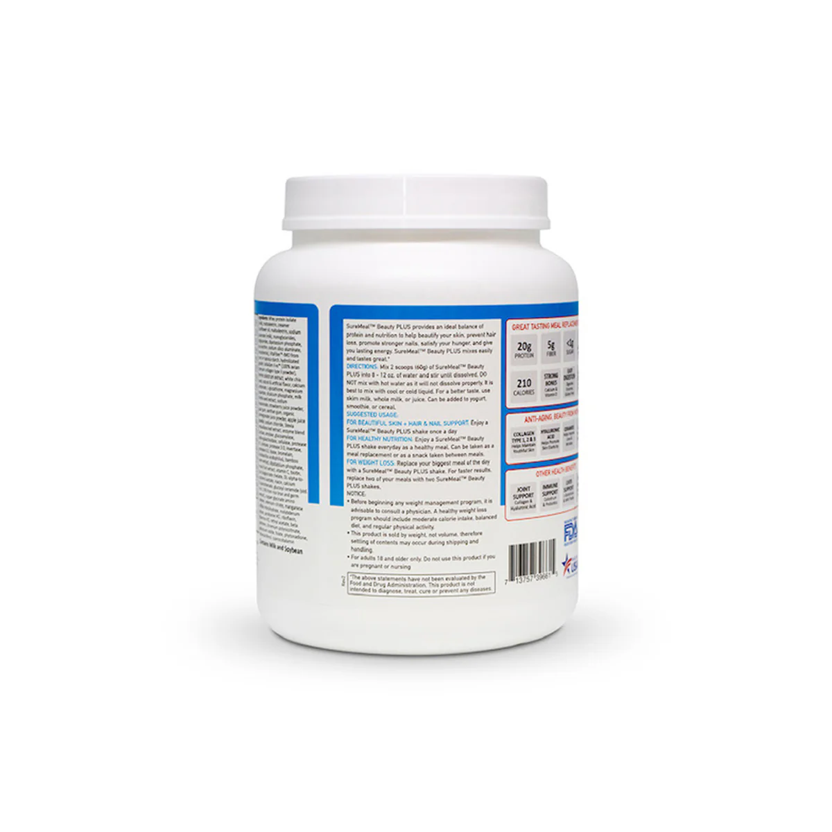Giống như các sản phẩm khác của hãng SureMeal, SureMeal Beauty Plus hoàn toàn không có đường, vì ngay cả người bình thường cũng không nên uống đường hằng ngày, rất không tốt cho sức khoẻ.
